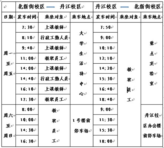 为做好北新街校区和丹江校区通勤保障,确保两校区平稳有序运行,根据《关于做好丹江校区运行管理和保障工作的通知》(商院党〔2020〕58号)要求,现将调整后的校车运行方案通知如下: