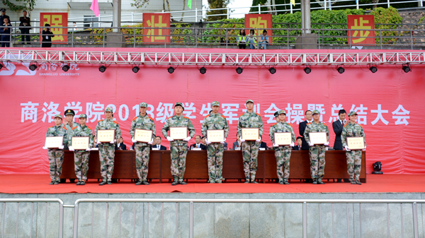汇报表演结束后,与会领导分别为军训队列先进集体、军训内务整理先进集体、军训工作优秀教官、军训工作先进个人、参训优胜标兵颁发了奖牌和荣誉证书。