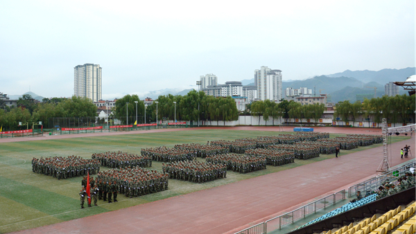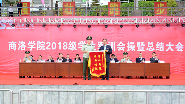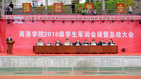 汗水书写青春,磨练见证成长。9月20日,我校隆重举行2018级学生军训会操暨总结大会,检阅2018级学生军训成果,并对军训中表现突出的先进集体与先进个人进行表彰。校领导龙治刚、范新会、魏书堂、刘宝盈、刘勇,中国人民武警部队商洛支队副参谋长、军训团团长吕喆少校,中国人民武警部队商洛支队执勤一大队队长郭伟少校出席大会。各二级学院党政主要负责人、有关职能部门负责人、全体2018级学生及辅导员参加了大会。大会由党委副书记彭虎军主持。