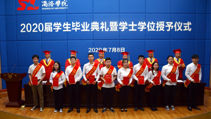 小暑时节,嘉木丰茂,桃李满园,又一个毕业季如期而至。7月8日,我校隆重举行2020届学生毕业典礼暨学士学位授予仪式。校领导龙治刚、彭虎军、曹渊、刘宝盈、刘勇、王新军出席典礼。校学位评定委员会委员,各院(部)党政主要负责人,学生处、教务处、团委主要负责人,毕业班辅导员代表以及毕业生代表参加典礼。学校同步开启网上直播,通过央视移动网、新华现场云、商洛发布等多个新媒体平台进行现场直播,万余名师生及学生家长齐聚云端、共襄盛典,共同见证这一难忘时刻。毕业典礼由党委副书记彭虎军主持。