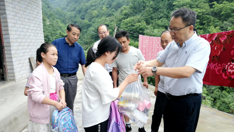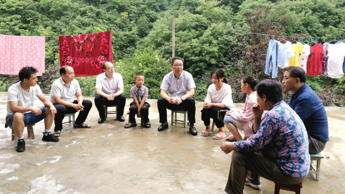 7月16日,党委书记龙治刚、副校长王新军赴我校包扶村——镇安县回龙镇和坪村走访慰问贫困户,党委委员、组织部部长郭瑾陪同慰问。