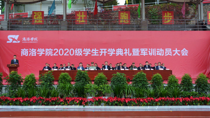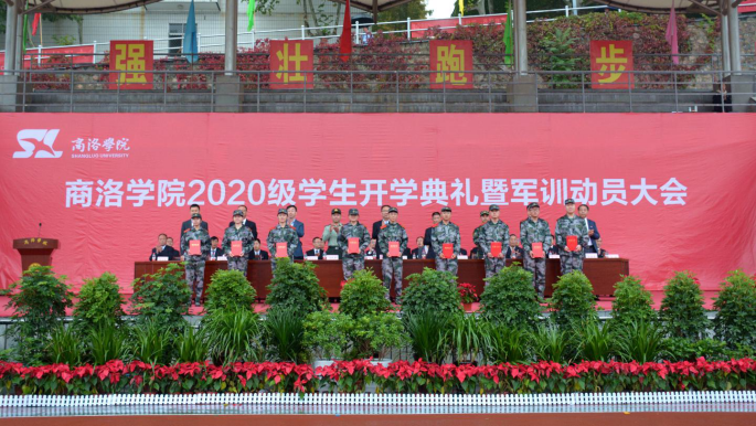 金秋九月,秦岭苍莽,丹水荡漾。9月28日上午,我校2020级学生开学典礼暨军训动员大会在学校体育场隆重举行。校党委书记龙治刚、校长范新会、党委副书记刘勇,党委副书记、纪委书记、监察专员曹渊、副校长刘宝盈、副校长王新军,商洛军分区动员处处长、商洛市人民政府征兵办公室副主任周武强上校,武警商洛支队参谋长、2020级新生军训团团长耿小民中校,化学92届校友、北京校友分会会长、北京龙门育才学校校长马良竹出席大会。二级学院(部)党政主要负责人及有关职能部门主要负责人,2020级全体新生参加大会。大会由刘勇主持。