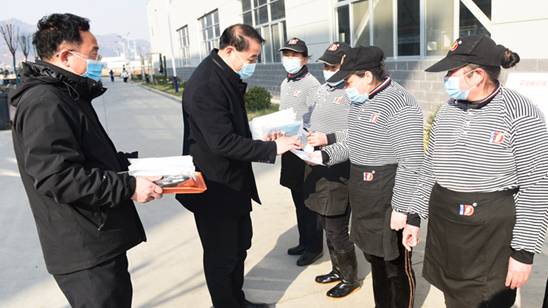 校领导先后慰问了保卫处、医务室、餐厅、学生公寓等一线工作人员,向他们送去了口罩、手套、围巾等慰问品,感谢他们为学校疫情防控工作付出的辛勤劳动,希望他们继续坚守工作岗位,牢守安全底线,做好自我防护,切实保障广大师生的身体健康和生命安全,全力夺取疫情防控阻击战的最后胜利。