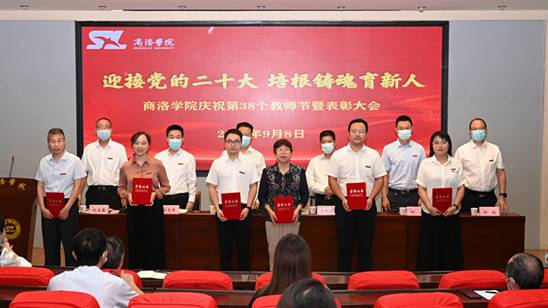 大会对我校2022年先进集体、2021年度目标责任考核先进单位,荣获2022年陕西省师德标兵、“陕西省五一巾帼标兵”、 “陕西省教科文卫体系统五一巾帼标兵”的优秀教师,学校2022年优秀教师、优秀教育工作者、师德先进个人获得者,以及在教学、科研和学生工作中取得突出业绩的教师进行了表彰。