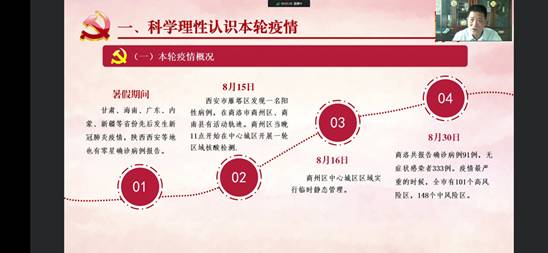 党委书记张志昌在授课中指出,自疫情发生以来,学校深入贯彻落实习近平总书记关于疫情防控工作的重要指示精神以及属地疫情防控工作要求,迅速启动防控预案,科学防控,有力维护了校园安全稳定大局和师生生命安全健康。