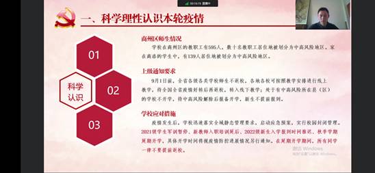 为深化大学生思想政治教育,强化师生疫情防控意识,引导广大青年学生严格落实疫情防控各项工作要求,弘扬伟大抗疫精神,以实际行动迎接党的二十大胜利召开,831日下午,校领导张志昌、范新会、彭虎军、刘勇、刘宝盈、王新军、郭瑾以“云端授课”的形式,为全体学生讲授“开学第一课”。