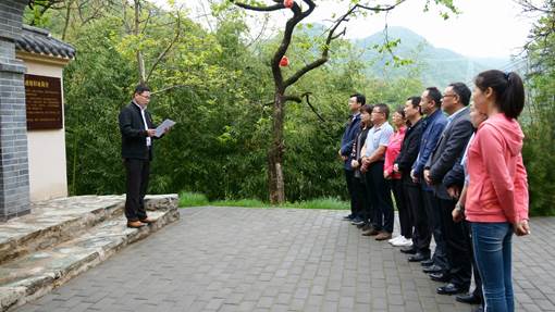 5月5日,机关一党总支第一党支部全体党员赴北宽坪革命旧址,缅怀李先念等老一辈无产阶级革命家及豫鄂陕革命根据地的光辉历史,重温入党誓词,开展“不忘初心跟党走,牢记使命做贡献”主题党日活动。