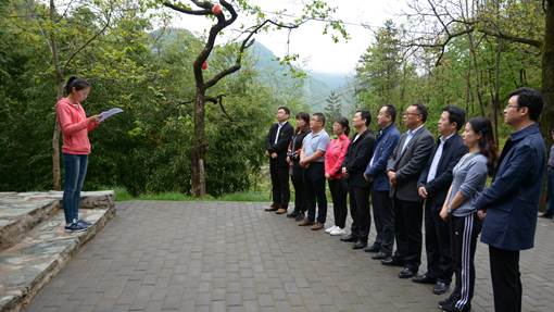 5月5日,机关一党总支第一党支部全体党员赴北宽坪革命旧址,缅怀李先念等老一辈无产阶级革命家及豫鄂陕革命根据地的光辉历史,重温入党誓词,开展“不忘初心跟党走,牢记使命做贡献”主题党日活动。